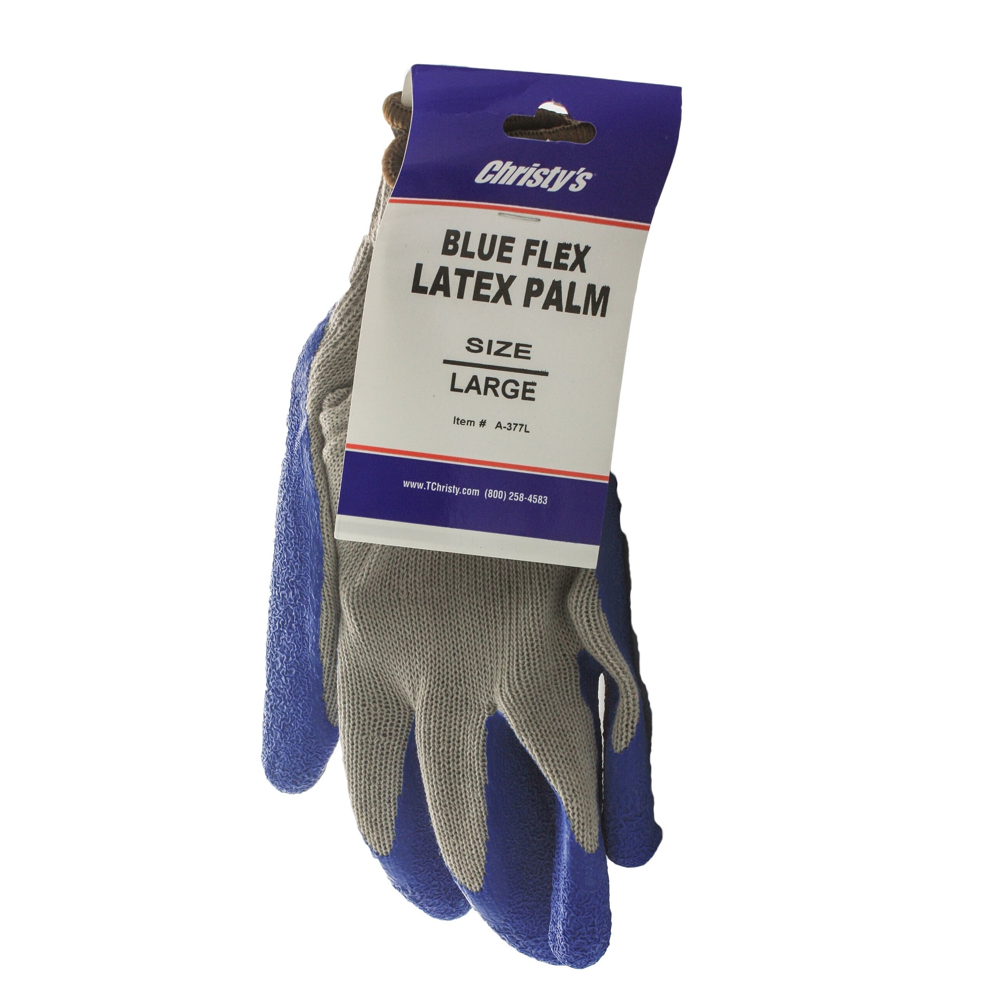 Christy’s Blue Flex Latex Palm Glove – Large. Flexible Knit Liner for Comfort and Open Back for Ventilation.